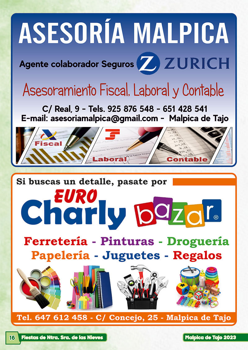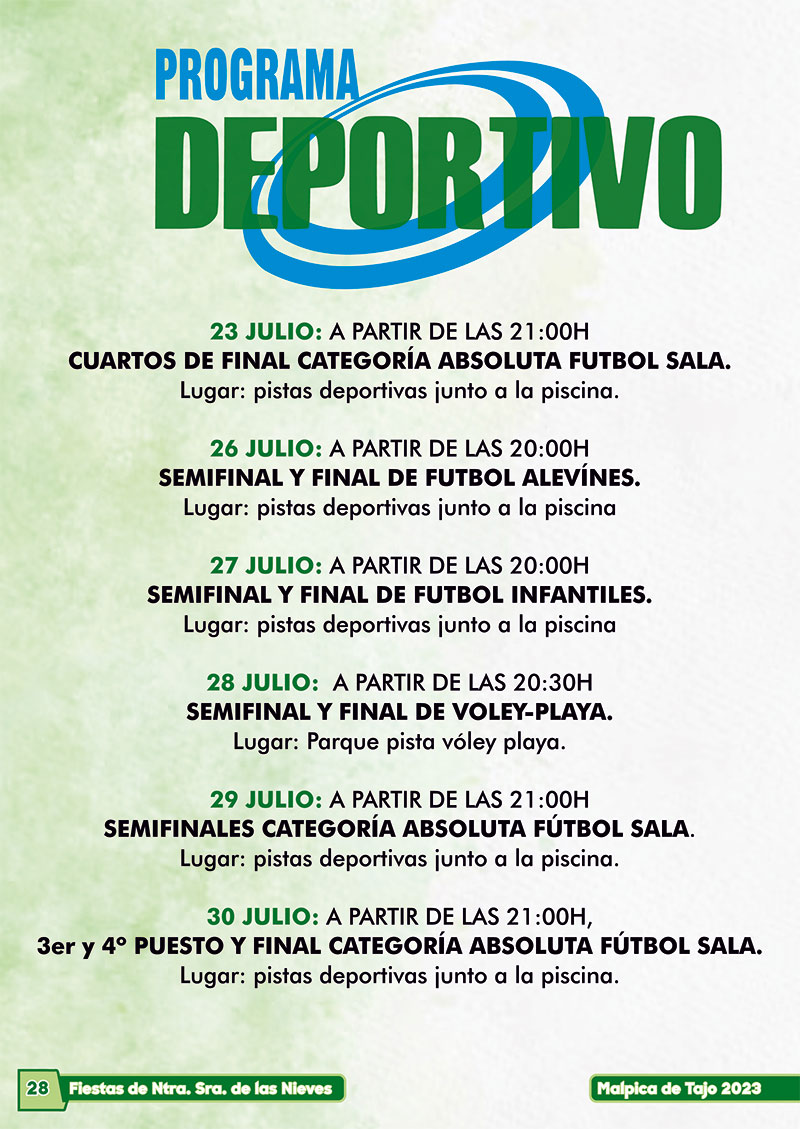 Programa de la fiestas de verano 2023 en Malpica de Tajo en honor a la Virgen de las Nieves (4 al 7 de agosto 2023)