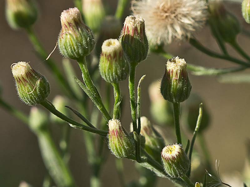 La Conyza sumatrensis es también una panta invasora que coloniza cualquier terreno al producir una gran cantidad de semillas que son dispersadas por el viento, se puede apreciar profusamente en las cunetas de las carreteras y caminos. Esto se ve agravado por la naturaleza poliploide de las especies y los riesgos de hibridación con las especies existentes en una zona, lo que puede dar lugar a tipos más invasivos. Puede ser fácilmente confundida con Conyza canadensis y Conyza bonariensis. La Conyza canadensis se distingue por sus brácteas glabras o casi glabras (sin pelo) que carecen de un punto rojo apical (en la parte superior), pero que tienen una superficie interior de color marrón. La Conyza bonariensis tiene brácteas densamente peludas, es especialmente pelosa en los tallos y alrededor de las axilas de las hojas, y crece hasta 1 m. La Conyza sumatrensis también tiene brácteas peludas pero no hay pelos largos cerca del ápice de las brácteas. También la superficie interna de las brácteas rojizas broncea y crece a 2m. Tiempo de floración: junio a octubre. Las fotos se en las cunetas del carreterín de Castrejón y de la carretera de Malpica-Bernuy.