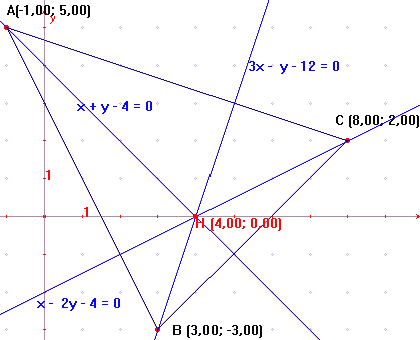 Ahora lo comprobamos con Geogebra, dibuja la intersección de las alturas, halla sus coordenadas y obtendrás: