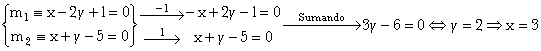Para hallar el circuncentro resolvemos el sistema formado por dos de las ecuaciones de las mediatrices:
